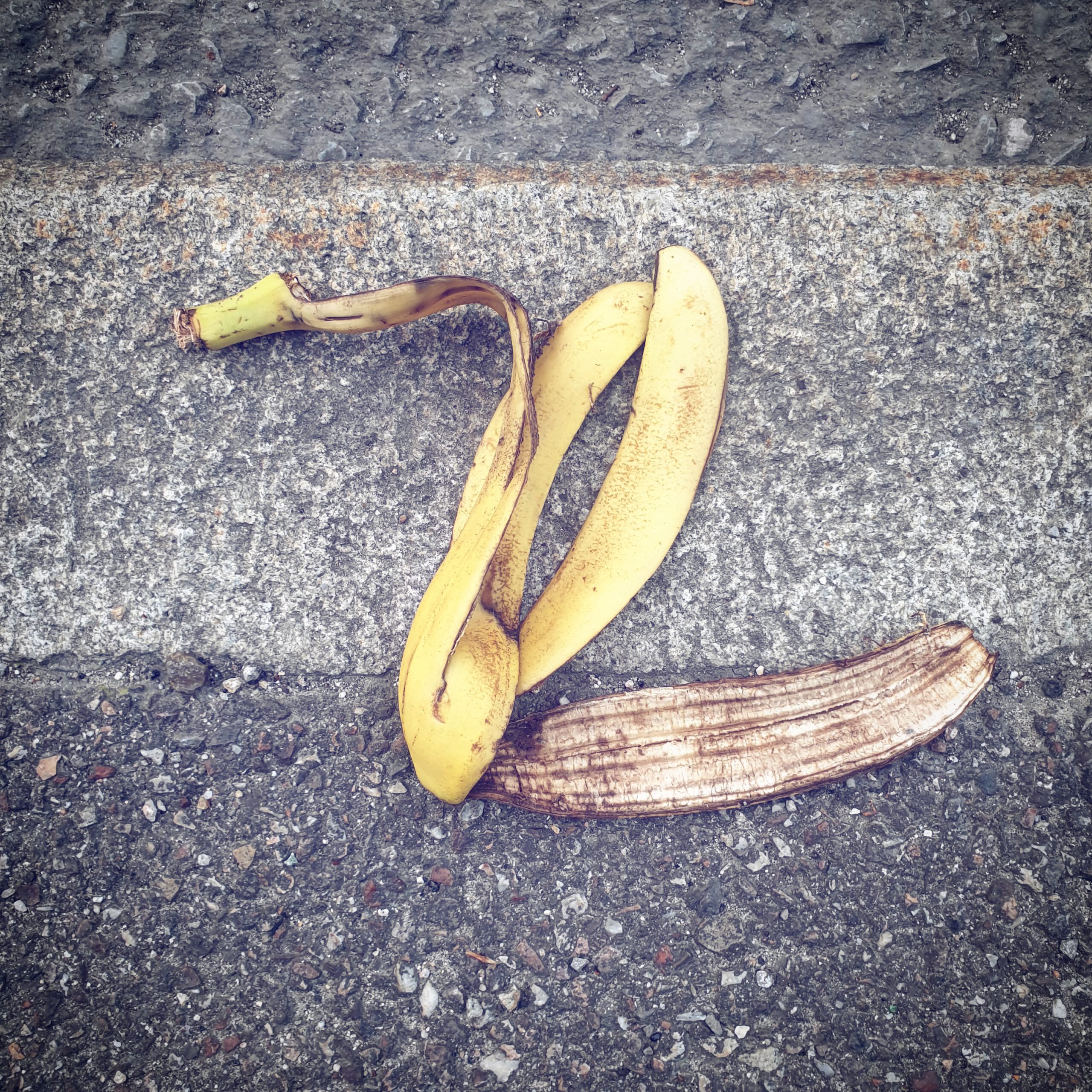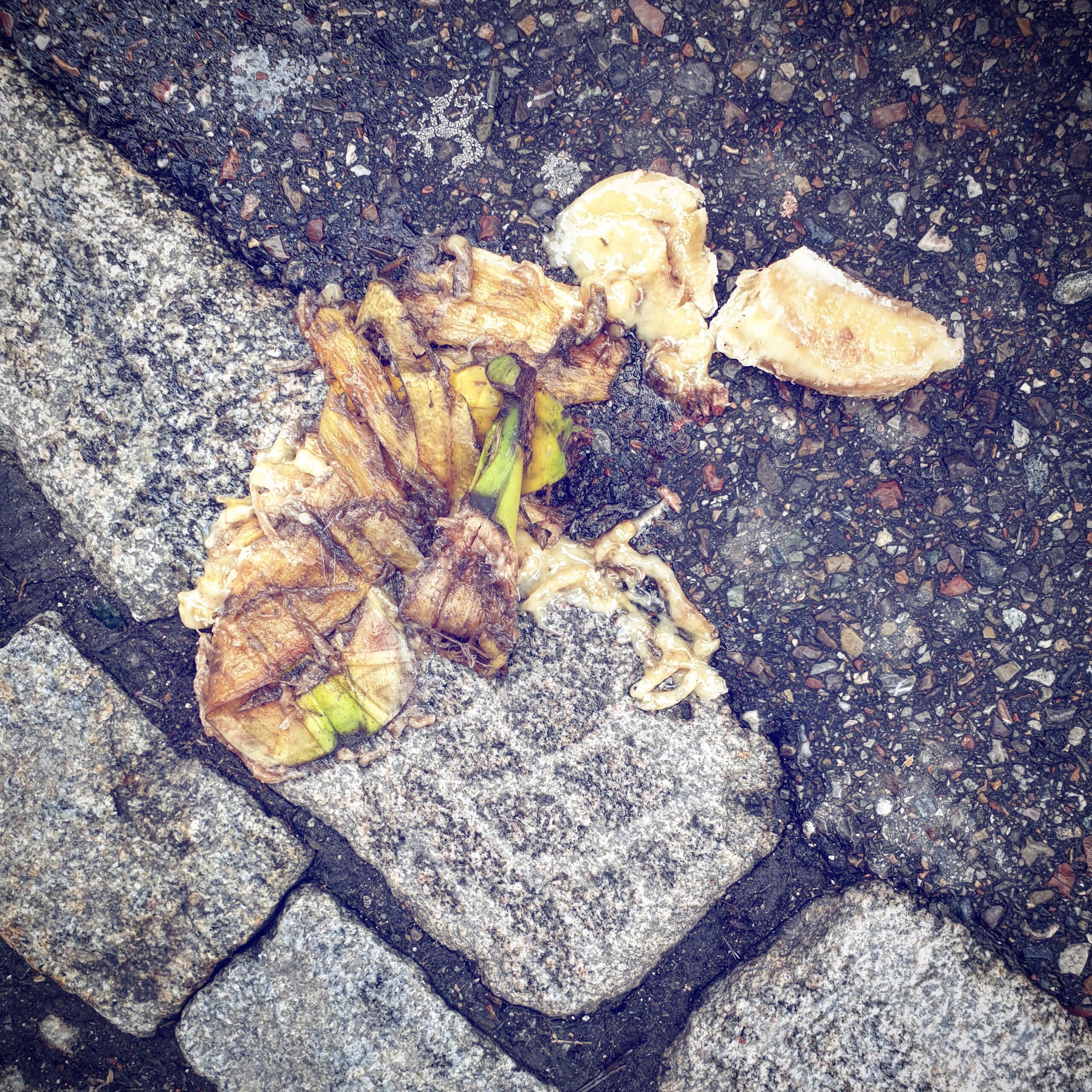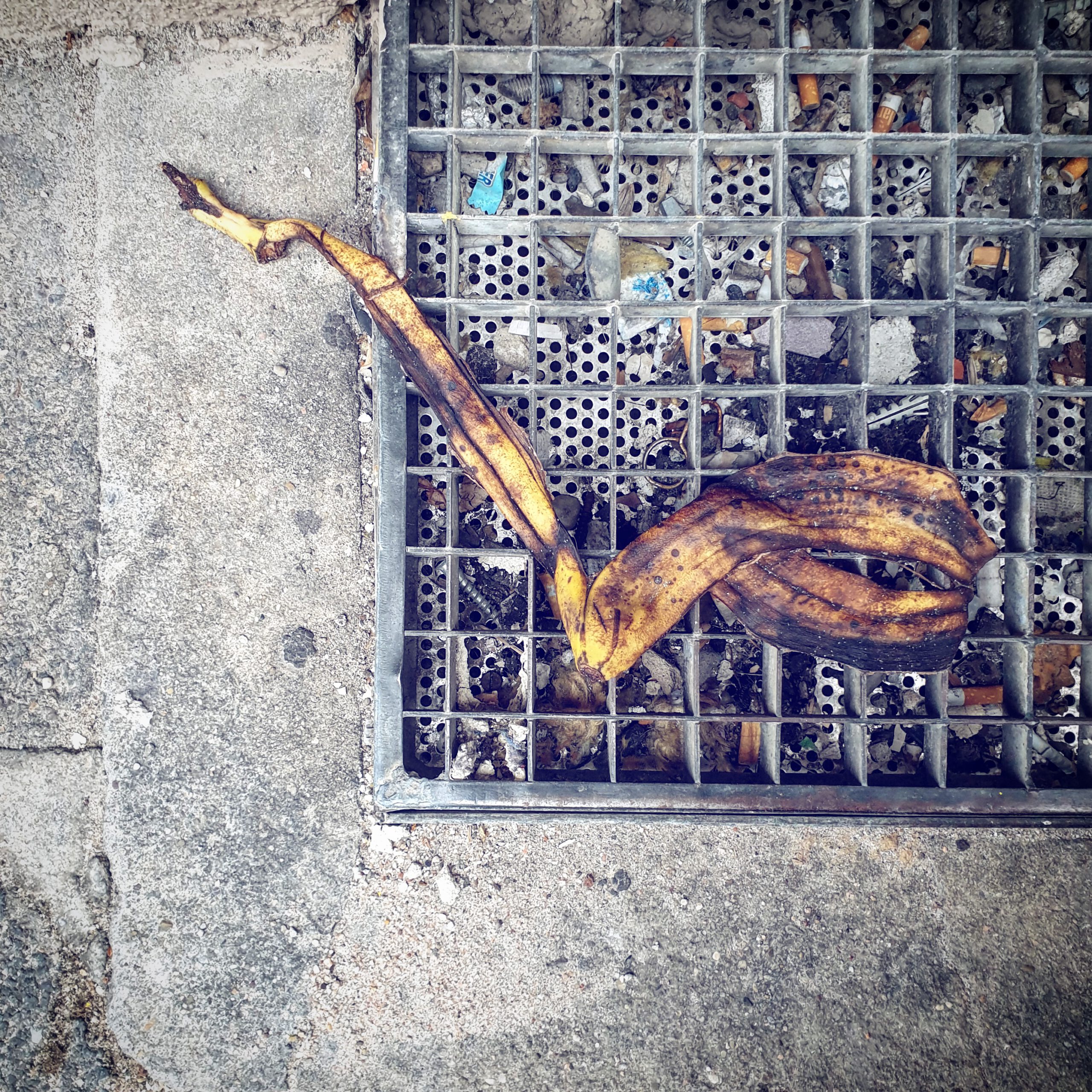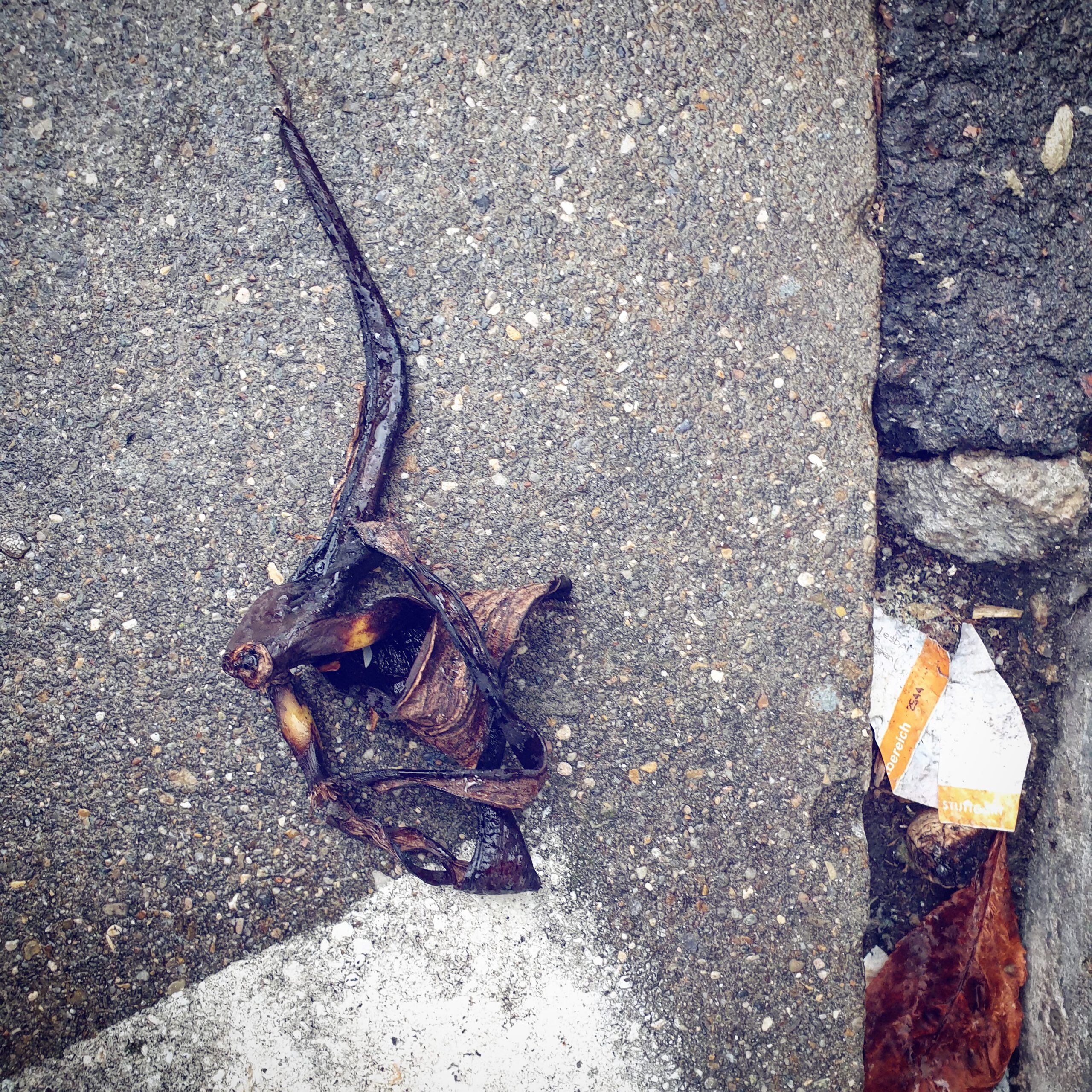 #BANANENREPUBLIK Ein dokumentarisches Foto-Projekt, das den Zersetzungszustand weggeworfener Bananenschalen im urbanen Raum konserviert.Fotos: Tame Priwitzer
