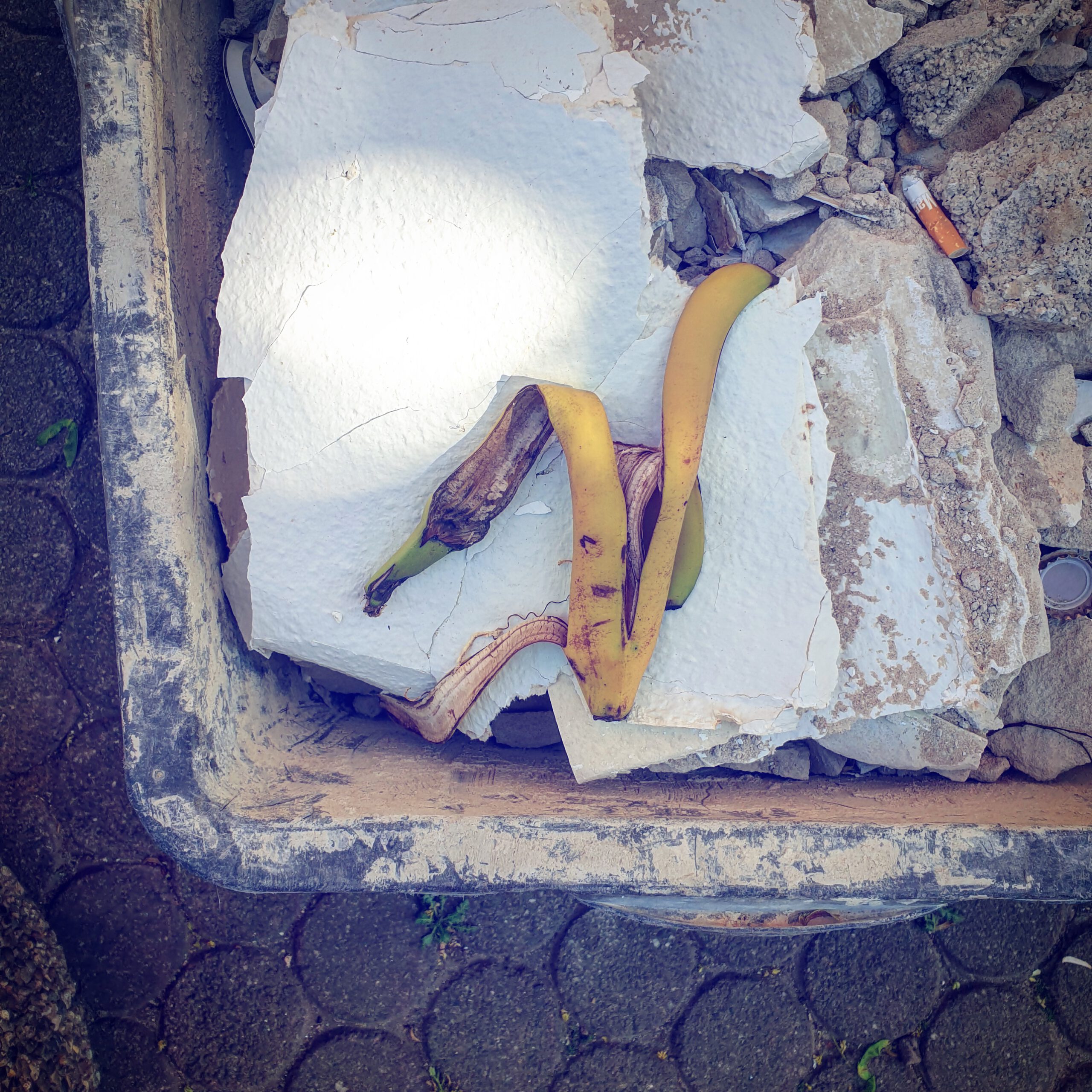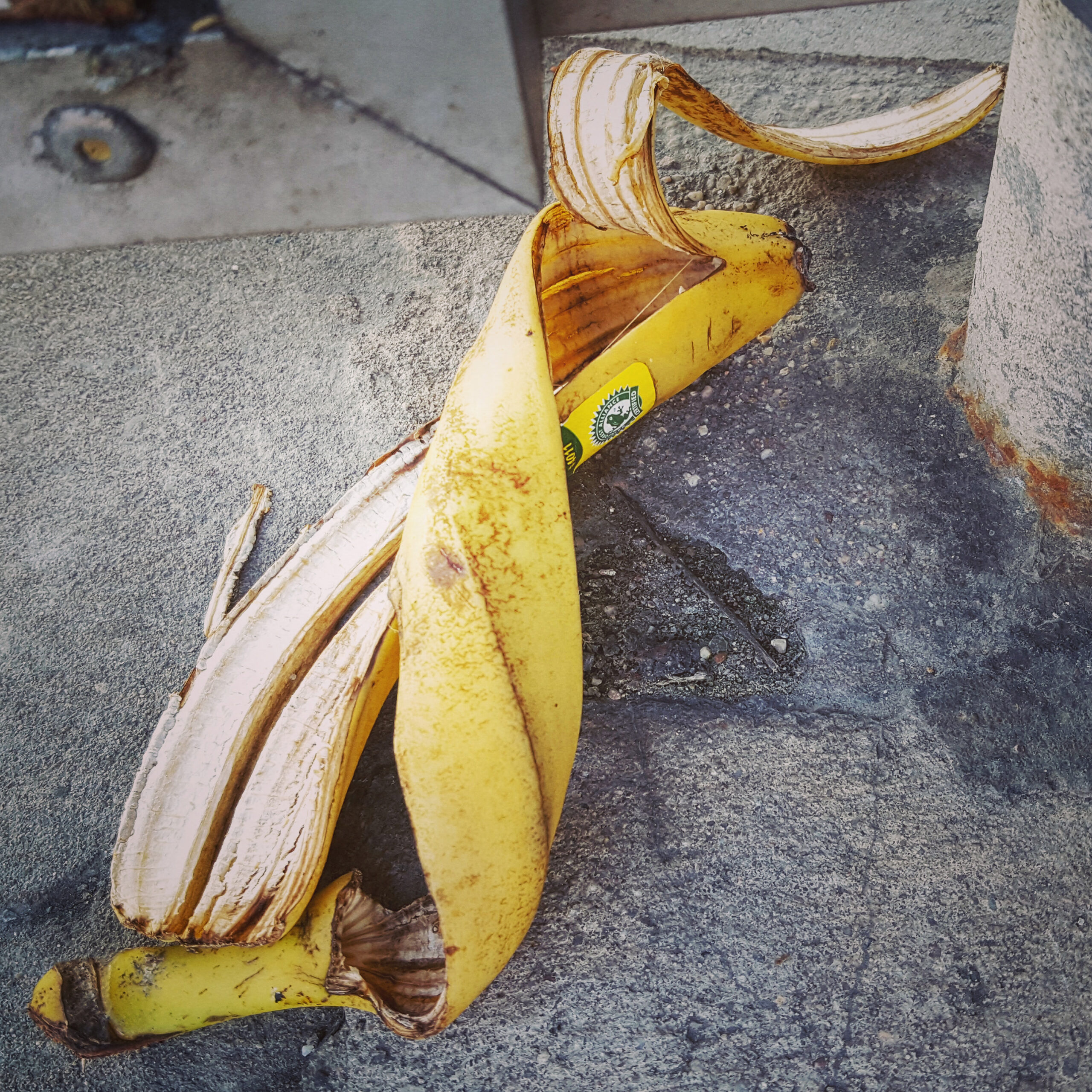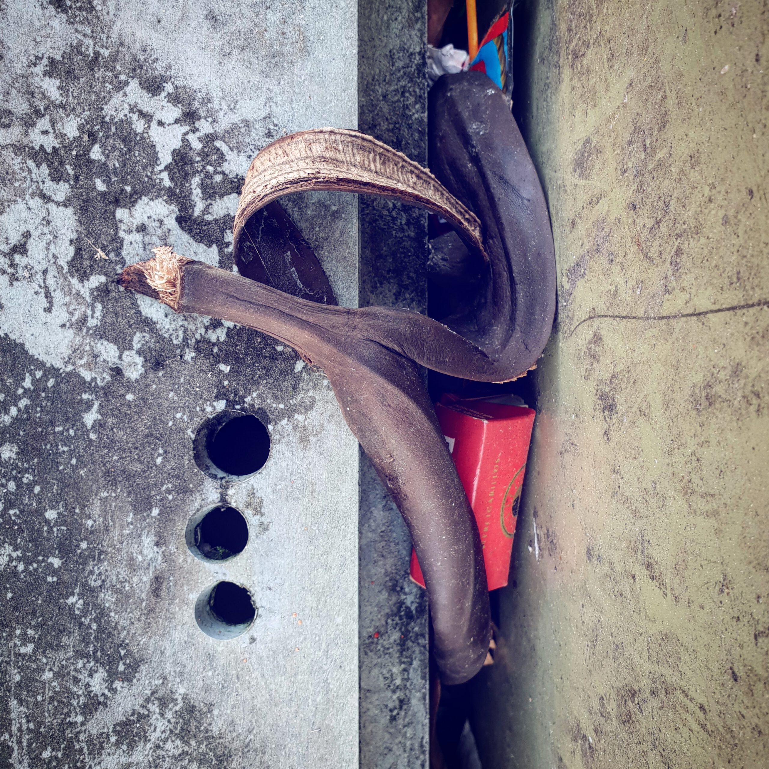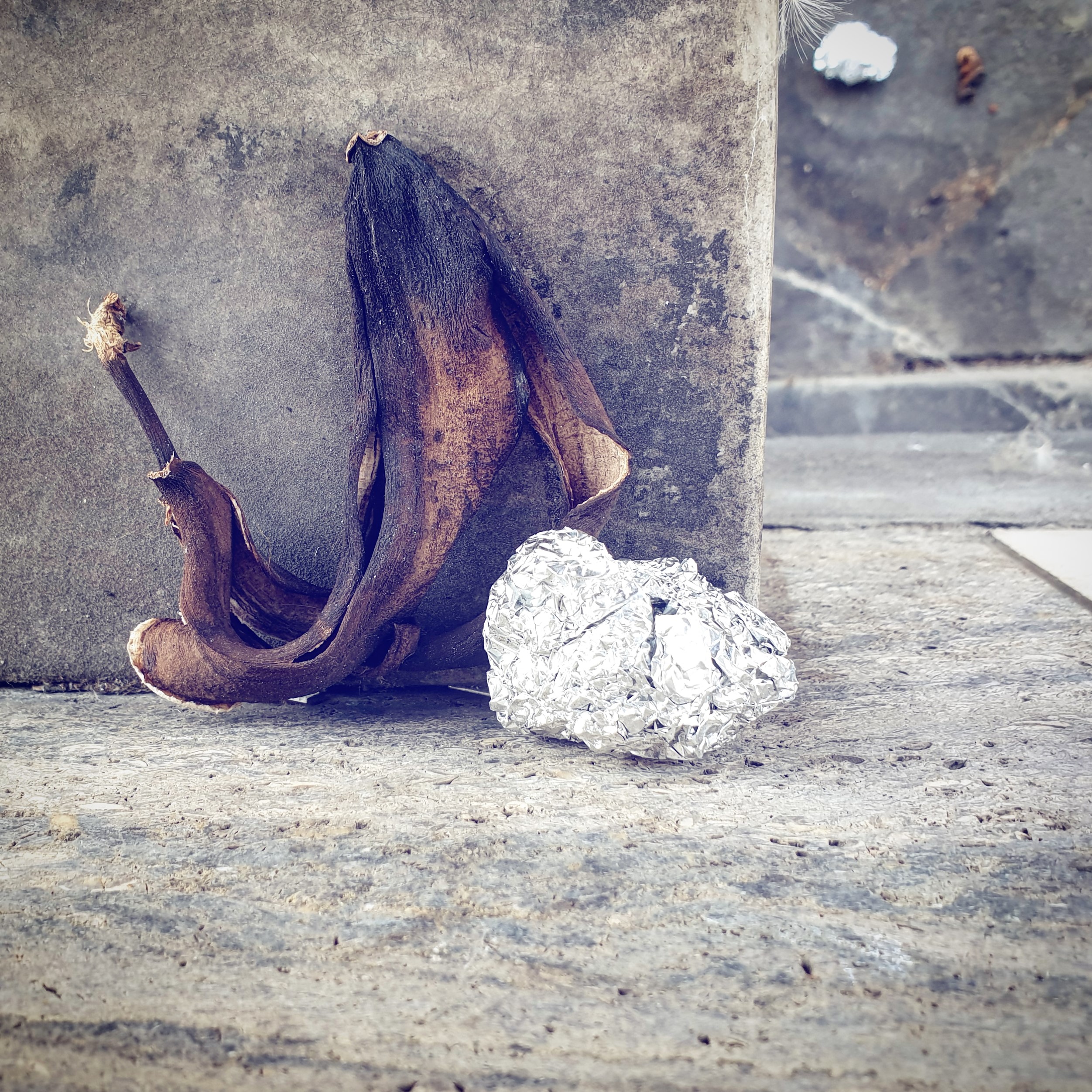 #BANANENREPUBLIK Ein dokumentarisches Foto-Projekt, das den Zersetzungszustand weggeworfener Bananenschalen im urbanen Raum konserviert.Fotos: Tame Priwitzer